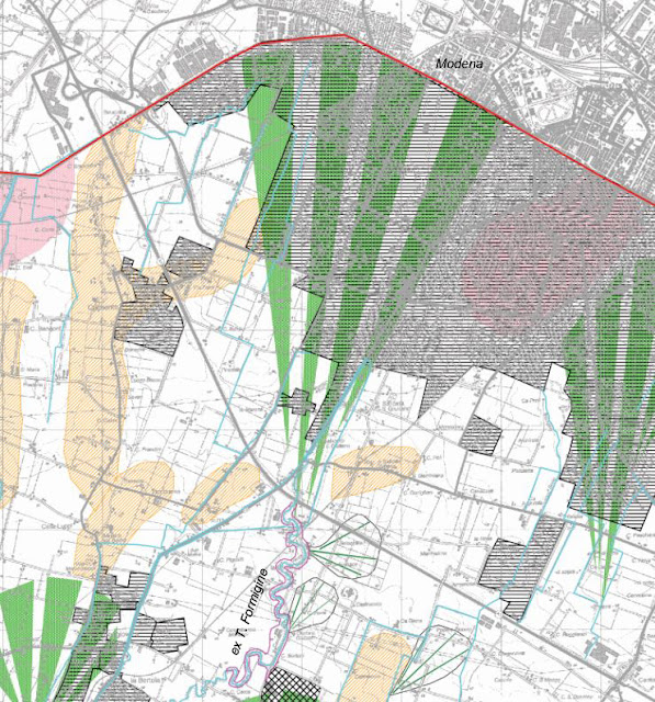La rete idrografica del territorio di pianura a sud di Modena e compresa tra fiumi principali del Secchia e del Panaro, deriva dall’interazione tra la sua naturale evoluzione e gli interventi eseguiti dall’uomo nel corso dei secoli. Le tracce più antiche dell’intervento umano sul drenaggio superficiale sono rappresentate dalle opere di bonifica relative alla centuriazione romana. A partire dal Medio Evo gli interventi hanno visto la costruzione di una nuova rete di canali, alcuni navigabili, data l’estrema importanza che le vie d’acqua ricoprivano nei secoli passati (Pellegrini, 1990). Altre modifiche antropiche riguardano la rettifica di alcuni tratti meandriformi dei fiumi Secchia e Panaro, le più recenti delle quali, che hanno interessato il F. Panaro a est di Fossalta, risalgono al 1972.