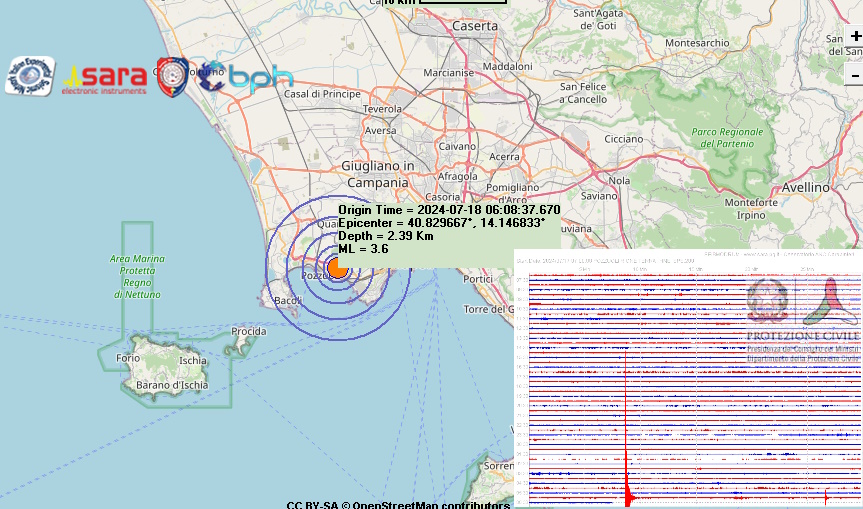 Epicentro localizzato nella zona a ridosso della solfatara, nel comune di Pozzuoli (NA). Ipocentro molto superficiale, evento avvertito in maniera forte dalla popolazione
