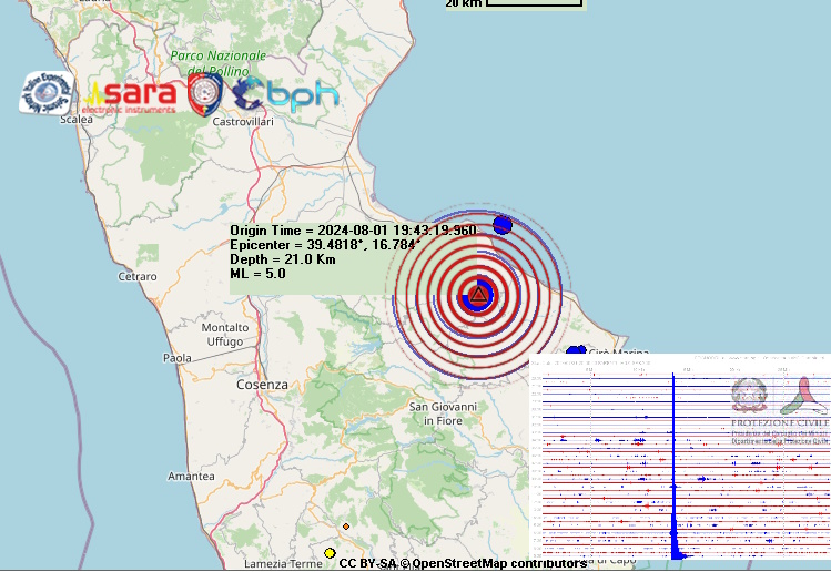 Una scossa di terremoto di magnitudo 5.0 è avvenuta alle ore 21:43:00 italiane in provincia di Cosenza, in Calabria, con ipocentro alla profondità di 21 km.