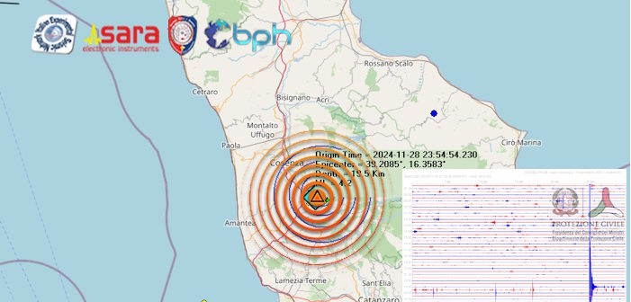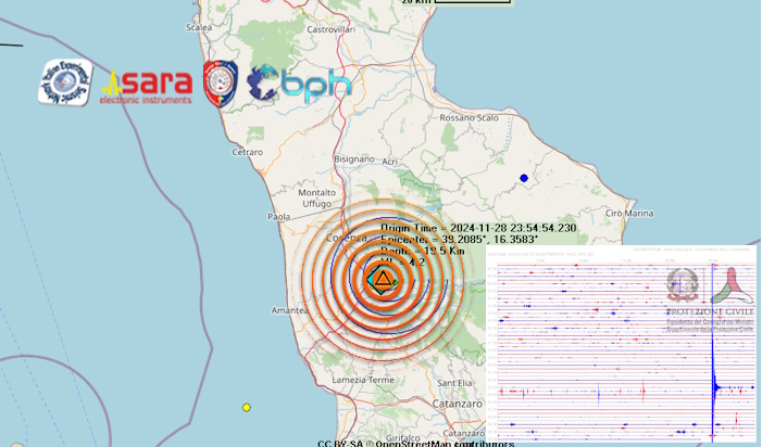 Una scossa di terremoto di magnitudo 4.2 è avvenuta alle ore 00:54:54 italiane in provincia di Cosenza, in Calabria, con ipocentro alla profondità di circa 20 km.