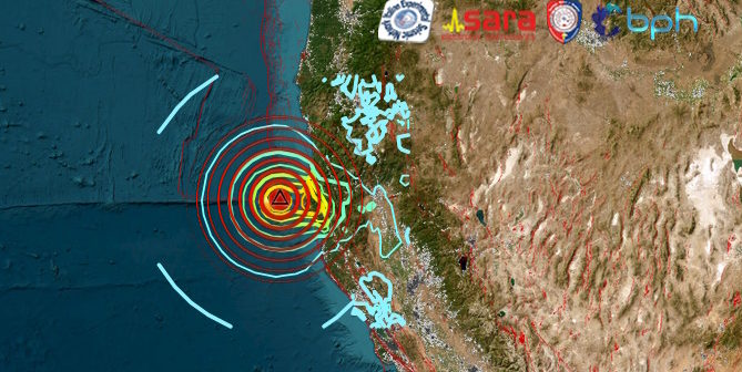 L’epicentro è stato localizzato in mare, nella Baia, 63 km a WNW di Petrolia. Potrebbero esserci danni nelle località lungo la costa. E’ stata diramata allerta tsunami in molte zone del Pacifico