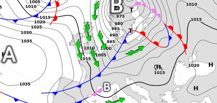 Pilotata da una profonda depressione presente sulla penisola scandinava ed inserita all’interno dello scivolo barico che questa figura di bassa pressione andrà costruendo con l’alta pressione delle Azzorre, la perturbazione si muoverà velocemente verso il bacino del Mediterraneo dove entrerà nella notte su venerdì 20 per poi arricciarsi attorno a una depressione secondaria che, come sempre avviene in questi casi, prenderà forma sui nostri mari e accompagnerà l’evoluzione dell’intero sistema che sarà destinato a raggiungere rapidamente il Centro-Sud (fig. 2).
