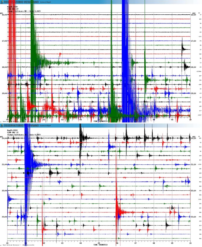 Alla data di pubblicazione del presente articolo, lo sciame più significativo per numero di eventi ed energia liberata registrato ai Campi Flegrei durante l’attuale crisi bradisismica si è verificato tra il 20 e 21 maggio 2024. Sulla base dei dati rivisti dal Laboratorio di Sismologia dell’Osservatorio Vesuviano [2] lo sciame è risultato costituito da un totale di 443 terremoti registrati in poco più di 25 ore, di cui 252 terremoti con magnitudo Md≥0.0.