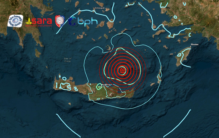 L’epicentro e’ stato localizzato 58 km a NNE della località Cretese di Eloùnda. Evento avvertito dalla popolazione in molte zone del Mediterraneo, anche sulle coste italiane della Puglia, Sicilia e Calabria.