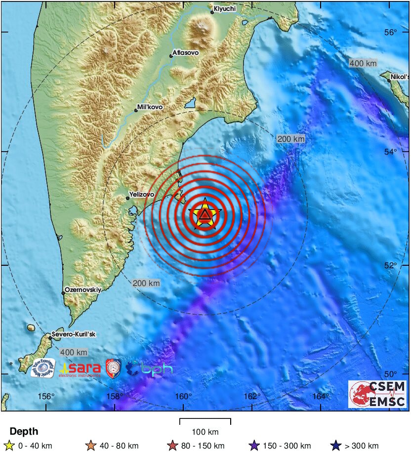 L’epicentro è stato calcolato in mare, a est della penisola, 144 km E della località di Petropavlovsk. Evento avvertito dalla popolazione nelle località abitate della penisola. Diramata allerta tsunami