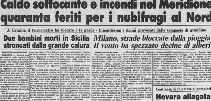 Se invece si fa osservare che queste temperature non appartengono all’estate mediterranea perché si tratta di valori di svariati gradi oltre la media climatologica del periodo, allora si ripete come un mantra che è estate ed è normale che faccia caldo, portando a sostegno delle proprie dichiarazioni ritagli di giornale di anni passati, come quello di fine giugno 1982.