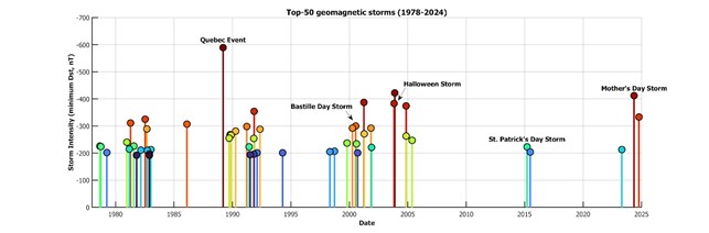 Il meteo spaziale è riconosciuto come una delle principali minacce globali: nel 2011 l’Organizzazione per la cooperazione e lo sviluppo economico (OCSE) lo ha inserito tra le cinque maggiori criticità per la società moderna. Anche l’Organizzazione delle Nazioni Unite (ONU) e il Consiglio Scientifico Internazionale lo classificano tra i rischi extraterrestri più significativi. Nonostante questo, la comunicazione su questi eventi è spesso limitata a un pubblico specialistico e nel passato solo pochi eventi meteorologici spaziali degni di nota sono stati riconosciuti con un nome, assegnato senza criteri condivisi ed efficaci, come mostrato in figura.