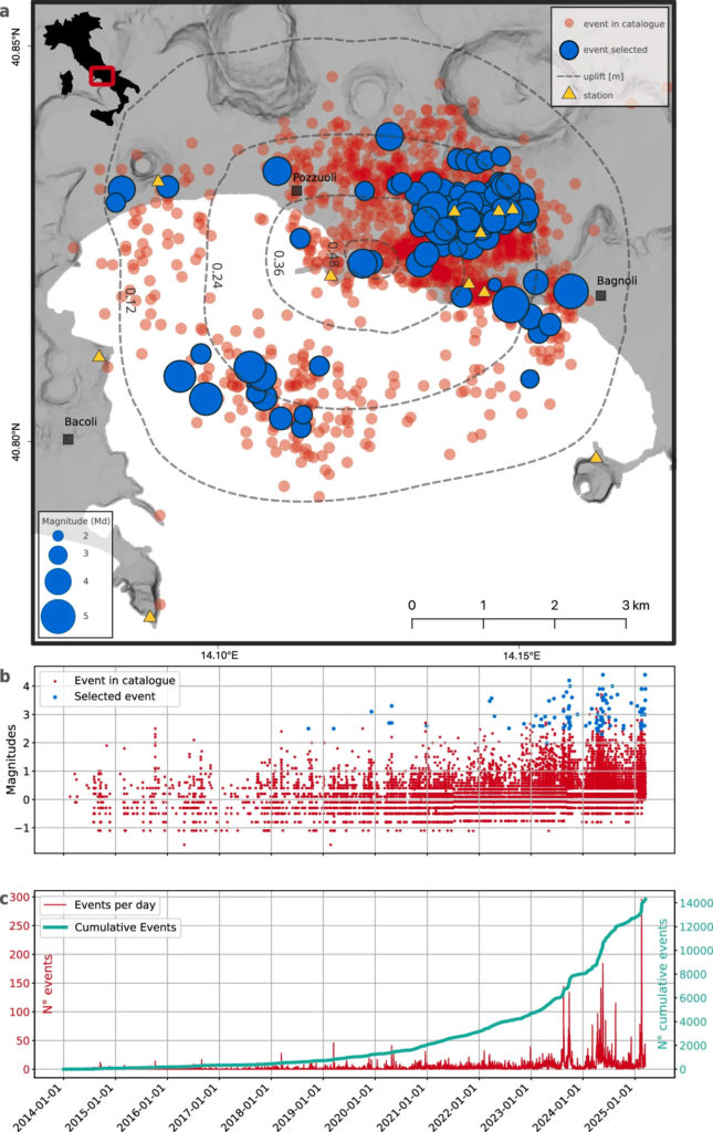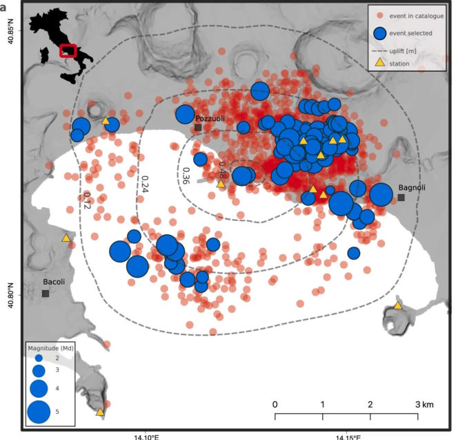 Lo studio, intitolato “Coupled earthquakes and resonance processes during the uplift of Campi Flegrei caldera”, è stato recentemente pubblicato sulla rivista Communications Earth & Environment di Nature.
