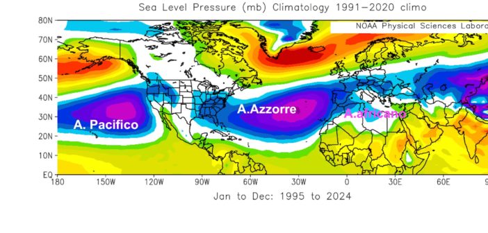 4. insomma, è come se le masse d’aria che raggiungono tali latitudini trovassero una barriera, cosicché i continui arrivi di nuove masse d’aria calda si accumulano in una fascia posta a nord del Sahara. Così nasce l’alta pressione dell’anticiclone africano. Ma così nascono anche gli altri 2 anticicloni permanenti della fascia subtropicale (quello delle Azzorre e quello del Pacifico)