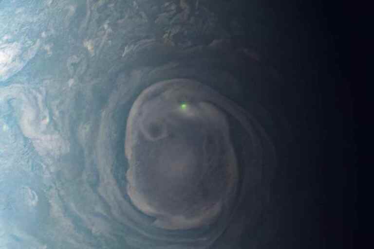 Certe volte lo Spazio sembra divertirsi a sorprenderci. Stavolta lo ha fatto con un bagliore verde, una scintilla improvvisa che ha attraversato le nuvole di Giove con la stessa velocità di un brivido. La sonda Juno, che gira intorno al pianeta dal 2016, è riuscita a immortalarlo quasi al volo. Un’immagine minuscola, eppure così potente da risvegliare subito domande, ipotesi e quel senso di meraviglia che non si addormenta mai del tutto.