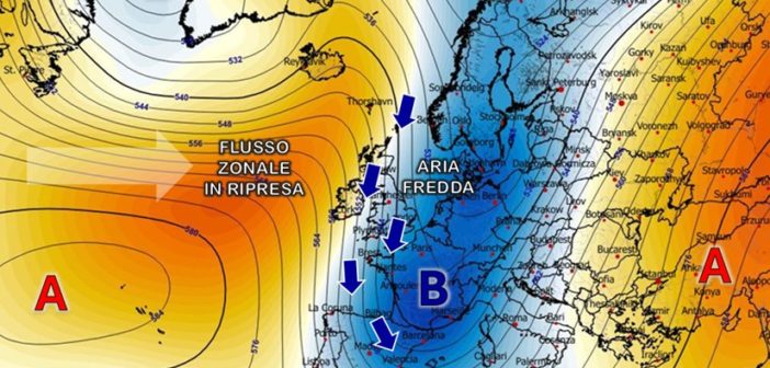 Con l’aggiornamento odierno entriamo un po’ più nei dettagli sull’evoluzione del tempo che andrà profilandosi nel corso della prossima settimana, quando l’Europa centro-settentrionale sarà gradualmente interessata in due riprese da una circolazione fredda di stampo prettamente invernale. Come abbiamo già anticipato nel precedente intervento, questa evoluzione sarà impostata da una incisiva saccatura di origine artica che nei prossimi giorni si espanderà verso le basse latitudini fino ad entrare sul bacino occidentale del Mediterraneo tra mercoledì 19 e giovedì 20 (fig. 1). La conca depressionaria sarà molto ampia dal momento che è prevista affondare fin sull’entroterra algerino ma, allo stesso tempo, sarà incalzata da ovest da una ripresa del flusso zonale che taglierà il contatto con la depressione scandinava riducendo così, entro le successive 48-72 ore, l’apporto di aria fredda in arrivo dalle alte latitudini.
