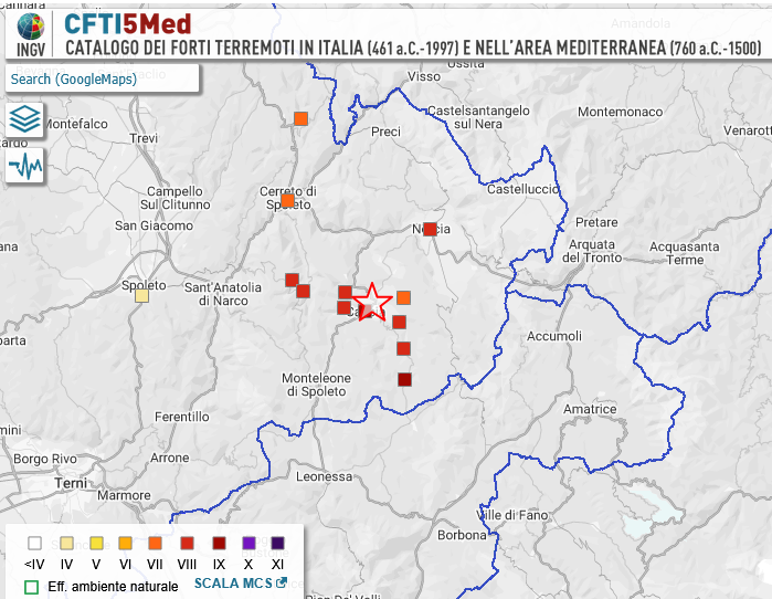Il terremoto fu sentito in una vasta area dell’Italia centrale: da Pesaro a Roma. Varie repliche furono sentite fino alla metà di gennaio 1600.